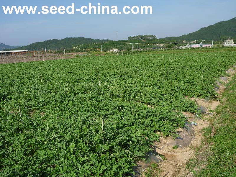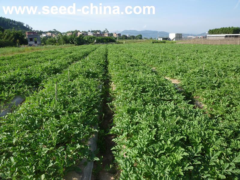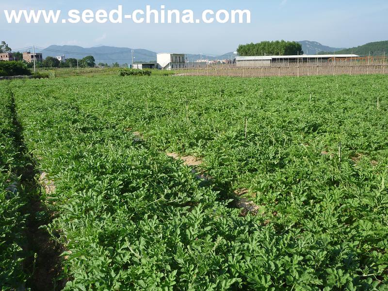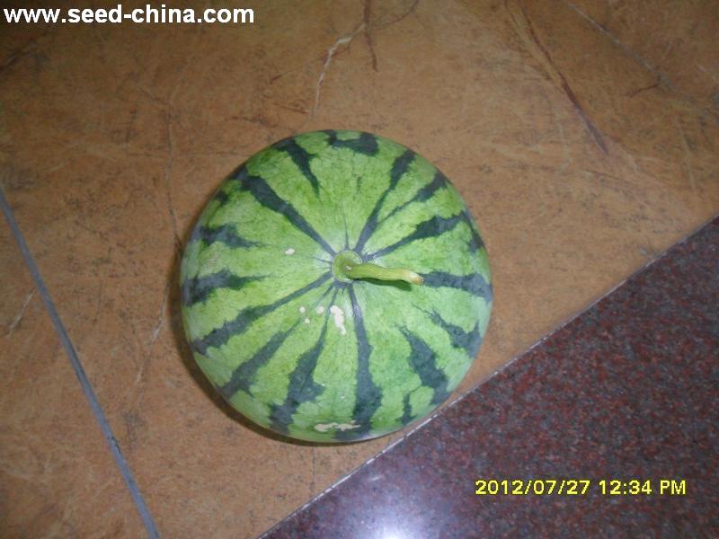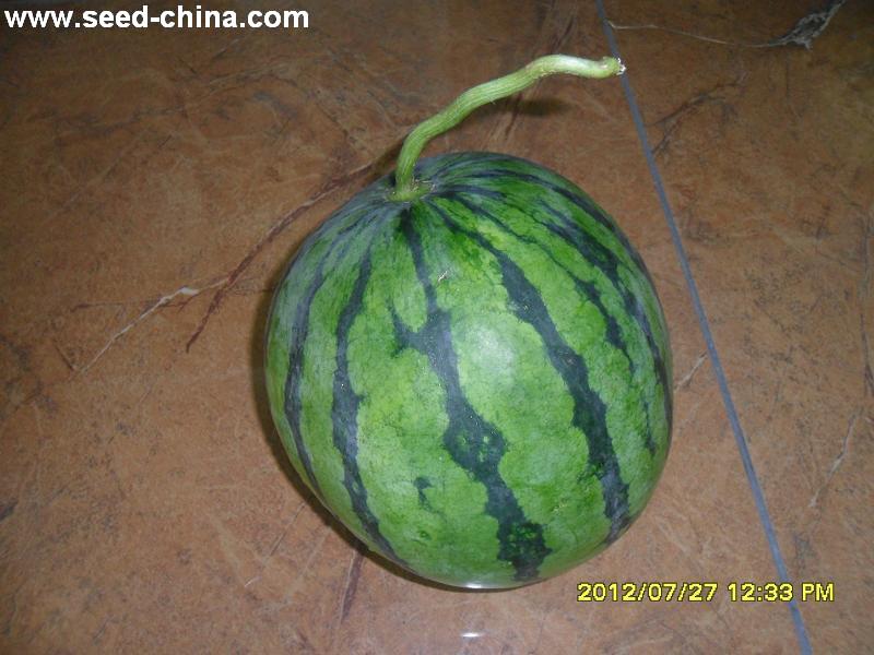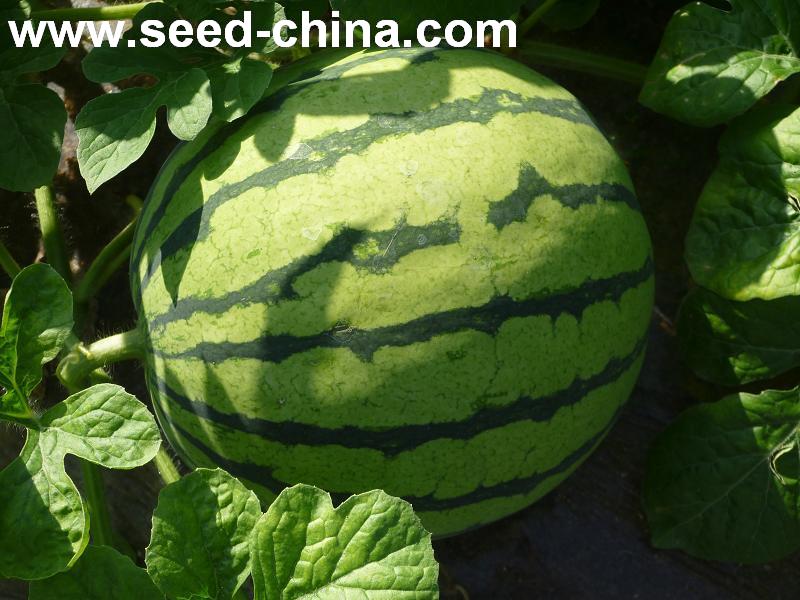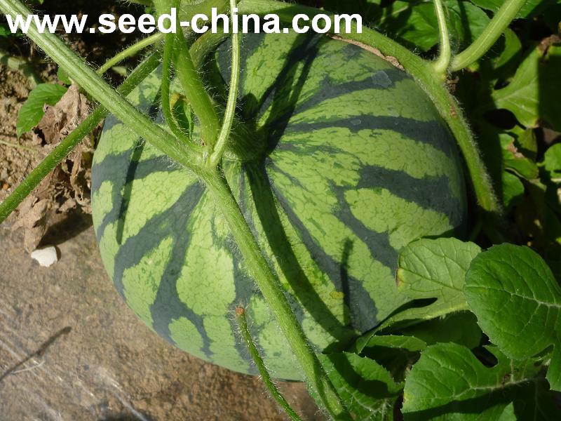 中早熟优质无籽西瓜一代杂种。低温弱光下好座瓜,开花后28-30天左右成熟。生长势强,瓜码较密,圆果,绿底条纹,有果霜,蜡粉较少,单瓜重6-7kg左右。果肉脆嫩,糖度高、口感好等优点。中心甜度量达12度以上,糖度梯度小。果肉桃红色,着色均匀,纤维少,不易倒瓤。皮薄耐贮运。高抗枯萎病,兼抗炭疽病,一般亩产4000公斤以上。适合保护地和露地栽培。在生产上要注意不要低节位座瓜,否则易出现着色瘪籽。