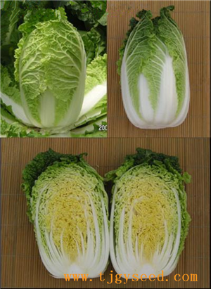耐抽薹迷你型白菜,春季定植后45天收获。耐抽 薹,黄心,外叶绿,口感好,柱形合抱,外形美观,适宜包装运输。春季保护地、露地栽培专用品种,球高20厘米,球径11厘米。单株重2-3斤。每667平方米种植5000株。生育期温度保持在13℃以上。