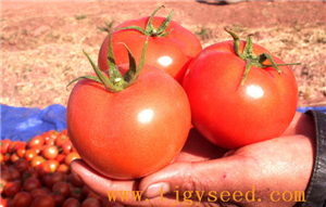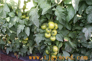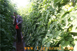 品种特性:大红果、高抗TY病毒、烟草花叶病毒、枯萎病等,无限生长型,中早熟,长势中等,果实扁圆形,单果重230克左右,青果无绿肩,成熟果果色鲜红亮丽,果肉厚,硬度大,耐贮运,耐夏季高温高湿,适合越夏、秋延和早春栽培。栽培要点:单株定植,单杆整枝,吊线栽培,一般亩栽2200株左右。施足底肥,增施开花座果肥,重视微量元素和叶面肥的使用,座果性强,可根据实际需要适当疏花疏果,收获前禁灌大水。
