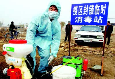昨日,辽宁锦州市黑山县防疫工作人员在八道壕镇小夏村临时设置消毒站 新华社图据新华社电 据农业部4日发布的消息,10月26日,辽宁省黑山县八道壕镇冮台村养殖户饲养的鸡出现死亡,即报告给辽宁省动物卫生监督管理局。11月1日,辽宁省初步诊断为疑似高致病性禽流感,立即采集病料送国家禽流感参考实验室进行确诊,同时启动应急预案。11月3日,经国家禽流感参考实验室确诊,疫情为H5N1亚型高致病性禽流感。