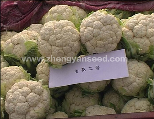 该品种是郑州市蔬菜研究所育成的越冬花菜中熟品种,生育期240天左右。叶片长椭圆形,平展,灰绿色,心叶半合抱,功能叶25片左右,花球呈高圆形,花粒较粗,乳白紧实,单球重0.5-1kg,最大花球可达2.5kg,亩产2000kg左右,可耐-10℃短期低温,花球生长期适宜温度为5-16℃,适合黄淮流域露地及保护地越冬种植。