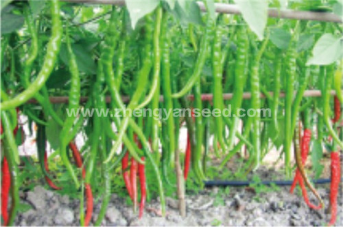 最新育成的中早熟长线椒优良品种。该品种果实翠绿,成熟果鲜红发亮,味辣,肉质脆嫩,品质优秀。果长27cm左右,果粗1.6cm,平均单果重28g左右。植株生长势强,株型紧凑,节密,丰产性极强;抗疫病、病毒病能力突出。适应栽培区域广泛,耐湿热天气,最适宜春保护地、露地、秋延栽培种植。