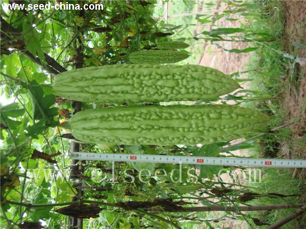 中早熟,果皮绿色,果长25-32厘米左右,单果重400-500克。主蔓16节着生第一雌花,坐果性能好,植株生长势强。肉质细嫩,微苦,品质优,抗逆性强,商品性好。