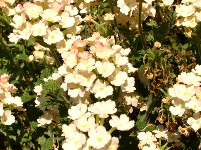特性:为多年生草本植物,常作1-2年生栽培。茎四棱、横展、匍匐状,低矮粗壮,丛生而铺覆地面,全株具灰色柔毛,长30-50厘米。叶对生有短柄,长圆形、卵圆形或披针状三角形,边缘具缺刻状粗齿或整齐的圆钝锯齿,叶基部常有裂刻,穗状花序顶生,多数小花密集排列呈伞房状。花萼细长筒状,花冠漏斗状,花色多,有白、粉红、深红、紫、蓝等不同颜色,略具芬芳。花期长,4月至霜降前开花陆续不断。蒴果,果熟期9-10月,种子寿命2年。