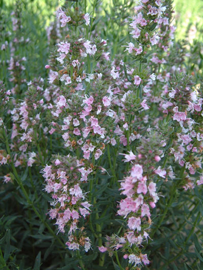 神香草属,唇形科,约15种,分布自亚洲中部,经西亚至南欧及北非,此外,有1种见于苏联伏尔加及顿河流域,中国有硬尖神香草H.cuspidatusBoriss.及宽唇神香草H.latilabiatusC.Y.WuetH.w.Li2种,均产新疆,为蜜源、芳香油和药用植物。多年生草本或亚灌木,帚状;叶大都线形至长圆形,极全缘;轮伞花序2至多花,大都偏于一侧,多数组成顶生伸长的穗状花序;花萼管状、管状钟形或近钟形,常具色泽,明显15脉,齿间凹陷处具小瘤状突起,萼齿5,等大;花冠蓝、紫或偶有白色,冠筒内藏或伸出,冠檐二唇形,上唇几扁平,先端微缺或2浅裂,有时近全缘,下唇开张,3裂,中裂片最大,先端截形或凹陷;雄蕊4,前对稍长,大部伸出,花药卵圆形,2室,室叉开;花柱先端相等2浅裂;花盘平顶;小坚果长圆形或长圆状卵形,项端被毛或具腺或无毛。