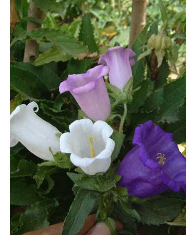 特性:二年生草本。株高约1米,多毛。莲座叶卵形至倒卵形,叶缘圆齿状波形,粗糙。叶柄具翅。茎生叶小而无柄。总状花序,小花1朵或2朵茎生。花冠钟状,有5浅裂,基部略膨大,花色有白、蓝、紫及淡桃红等。花期4月-6月。
