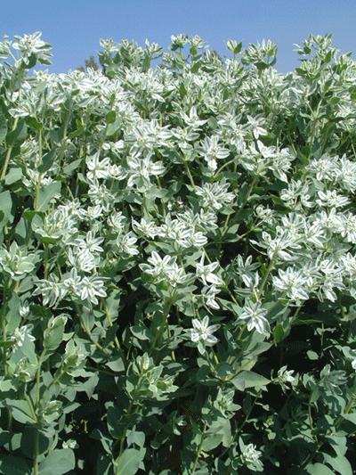 银边翠可栽植于风景区、公园及庭园等处布置花坛、花境、花丛,亦可作林缘地区及盆栽,也可作切花材料。银边翠顶叶呈银白色,与下部绿叶相映,尤如青山积雪,如与其他颜色的花卉配合布置,更能发挥其色彩之美。为良好的花坛背景材料,还可作插花配叶。