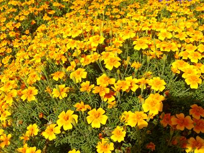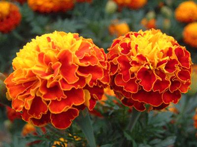 特性:株高30至40厘米。羽状复叶,小叶披针形。花梗自叶腋抽出,头状花序顶生,单瓣或重瓣。花色有红褐、黄褐、谈黄、紫红色斑点等。花形与万寿菊相似,但较小朵而繁多。开花时,在矮墩墩多分枝的棵儿上,黄橙橙的花朵布满梢头,显得绚丽可爱。孔雀草有很好的观赏价值,适宜盆栽、地栽和做切花。叶对生,羽状分裂,裂片披针形,叶缘有明显的油腺点。头状花序顶生,花外轮为暗红色,内部为黄色,故又名红黄草。因为种间反复杂交,除红黄色外,还培育出纯黄色、橙色等品种,还有单瓣、复瓣等品种。花期从“五一”一直开到“十一”。