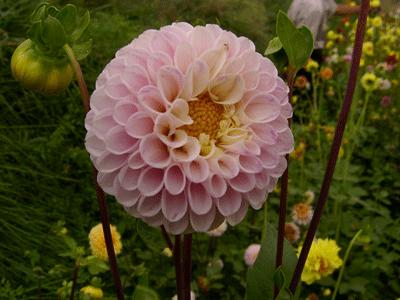多年生草本。实为大丽花品种中矮生类型品种群,小丽花植株低矮,高20cm-60cm;茎多分枝,着花多而小。花径5cm-7cm;块根也较细小。花形变化不及大丽花丰富;然而花色鲜丽,丰富多彩花期更长,自6月至霜降花开不绝结实力很强。。