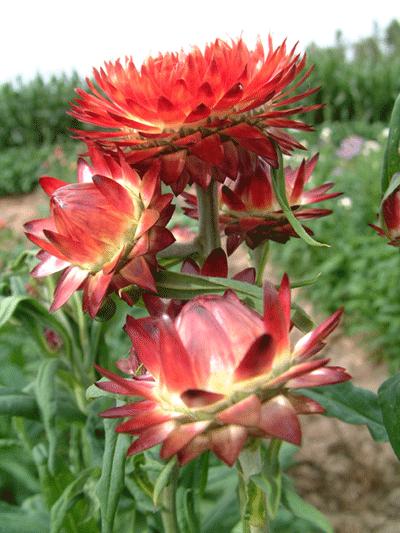 特性:一年生草本植物。茎直立,多分枝,株高50一1OOcm,全株具微毛。叶互生,长椭圆状披针形,全缘、短叶柄。头状花序生于主枝或侧枝的顶端,花冠直径3~6cm,总苞苞片多层,呈覆瓦状,外层椭圆形呈膜质,干燥具光泽,形似花瓣,有白、粉、橙、红、黄等色,管状花位于花盘中心,黄色。晴天花开放,雨天及夜间关闭,瘦果小棒状,或直或弯,上具四棱,千粒重0•85g。种子寿命2~3年。花期7~9月,果熟期9一10月。栽培品种有"帝王贝细工",分高型、中型、矮型品种。有大花型、小花型之分。同属植物500余种。