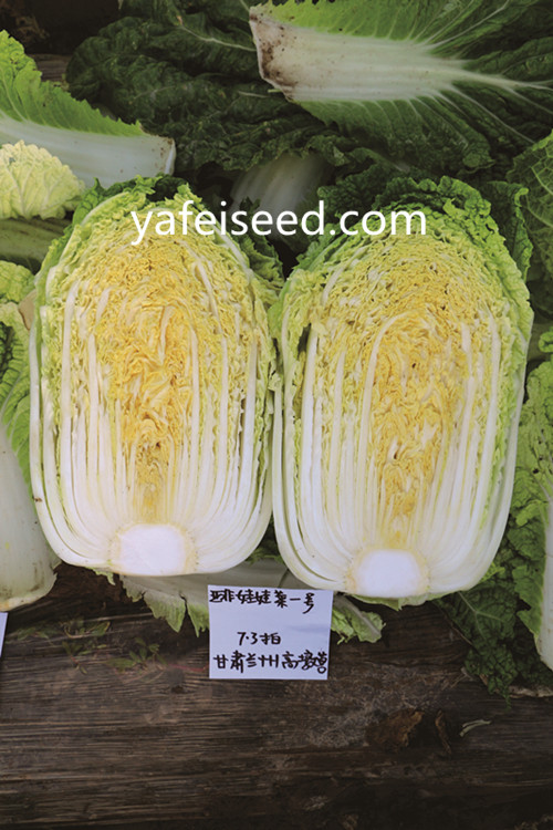 产品介绍:微型白菜,商品性好,深受现代家庭欢迎。金黄内芯,叶脉薄,水分含量低,口味极佳,耐抽薹,春季栽培稳定,低温条件下球内叶分化快,单球重500g以上,圆筒形,外叶深绿,抱合型,高抗霜霉病。适合密植,总产量高。极早熟,生育期约为50-55天(建议栽培密度:8000株以上/亩)