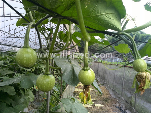 极早熟,耐寒,果实膨大快,以嫩瓜供食为主,第一雌花着生在主蔓10-12节,一般4-6个瓜连续着生;嫩瓜高圆球形,肉厚,品质优,果实白绿色带花斑,随着瓜的生长颜色加深,单瓜重0.4-0.5公斤,口感脆甜。
