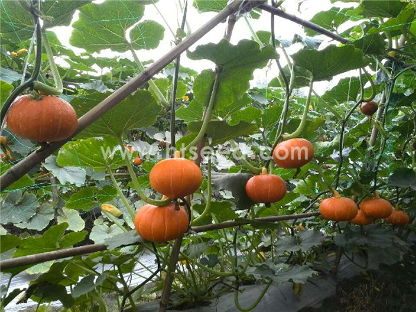 杂交一代中大果型栗南瓜新品种。早熟,转色快,果实扁圆形,果皮深红色,外形美观,单瓜重2.0kg,果肉橙红色,肉厚3.0cm左右,粉质,品质风味俱佳。该品种春季栽培全生育期90天左右,生长势中等,坐果性好,抗性强,易栽培、易管理,产量高,一航比同类产品高20%左右。