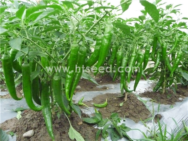 中熟青皮粗长牛角椒品种,是目前国内综合性状表现最优秀的深绿色尖椒 品种之一。植株生长势旺盛,叶色浓绿。果实长棒形,果长24-27厘米,果 宽3.6厘米左右,肉厚0.37厘米,单果重65克左右;辣味中等、柔和,肉质 细,果表光滑,顺直无皱,果形整齐一致,商品性好,耐贮运,耐湿热, 抗性好,适应性广。从定植到采收约50天,产量特高,管理较好条件下一 般亩产6000公斤左右。