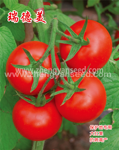 该品种系利用国外育种材料最新选育的无限生长类型大红果番茄品种。果实高扁圆型,硬度强,果实均匀,单果重180-220克,商品果极美观。中早熟,植株生长势强,节间较为紧凑,易坐果,抗叶霉病、枯萎病、根腐病、番茄花叶病毒等病害。适宜早春保护地、春露地栽培。