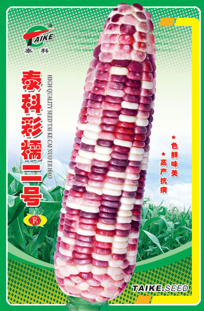 紫白双色鲜食糯玉米单交种, 华北地区从出苗到采收到鲜穗, 春播85天左右,株高220_----250cm左右,穗长16—18cm, 穗行数14—16行, 果穗锥型,籽粒紫白相间, 整齐均匀,结实紧密饱满, 亩产鲜果穗1000kg左右。 鲜穗经蒸煮食用,糯性好,软粘适度,口感佳,色香味俱全,商品性好,抗逆性强,抗玉米大小斑病,茎腐病。