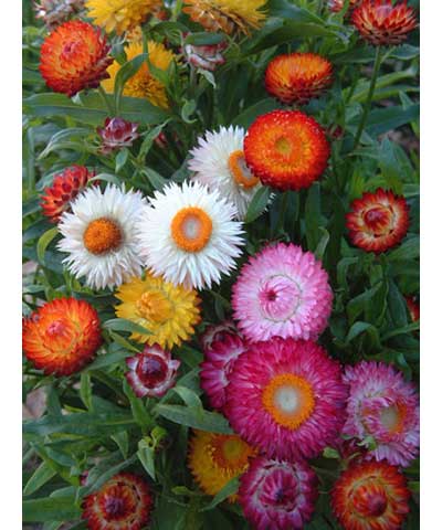 特性:一年生草本植物。茎直立,多分枝,株高50一1OOcm,全株具微毛。叶互生,长椭圆状披针形,全缘、短叶柄。头状花序生于主枝或侧枝的顶端,花冠直径3~6cm,总苞苞片多层,呈覆瓦状,外层椭圆形呈膜质,干燥具光泽,形似花瓣,有白、粉、橙、红、黄等色,管状花位于花盘中心,黄色。晴天花开放,雨天及夜间关闭,瘦果小棒状,或直或弯,上具四棱,千粒重0•85g。种子寿命2~3年。花期7~9月,果熟期9一10月。栽培品种有"帝王贝细工",分高型、中型、矮型品种。有大花型、小花型之分。同属植物500余种。