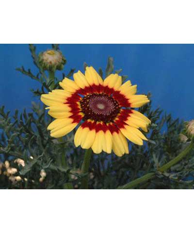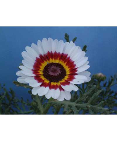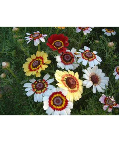 特性:花环菊为菊科、茼蒿属一、二年生草本植物。茎直立多分枝,株高30厘米至70厘米,叶二回羽裂。头状花序,花冠有红、粉、黄、白、紫等色,常二、三色呈复色环状,花期6月至9月。