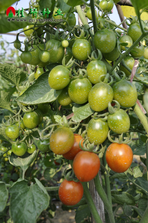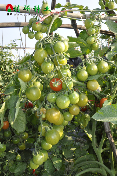 最新国外引进小型红色水果番茄品种,半停心型,抗TY病毒及TOM病毒,综合抗病强,长势中等偏旺,中量中等,株形清秀,抗早衰,易座果,上下座果整齐,萼片展开,不易落果,果形椭圆,果面光滑亮度好,红果鲜红艳丽,口感脆爽,硬度高,耐裂果,单果重16-20克,果均匀度好,品质优秀。