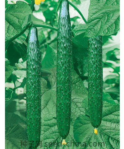 最新育成的一代杂交品种,植株生长势强,叶片浓绿色,主蔓结果为主,第一雌花始于主蔓第5节左右,连续座果能力强,不易早衰。瓜色油亮,瓜肉浅绿色,腰瓜长36 38厘米,瓜粗3 4匣米左右,瓜把长度约占腰瓜八分之一,商品瓜率高。刺瘤均匀,品质佳,丰产性好,综合抗病能力强,抗逆性强,亩产可选1万公斤,是夏秋露地栽培和秋延后栽培的理想品种。