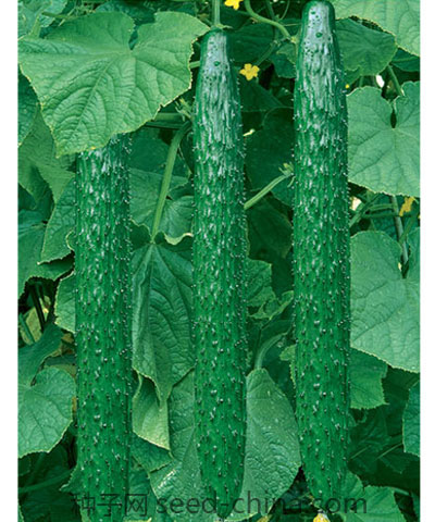 该品种为一代杂交新品种,植侏生长势强,叶片偏小,瓜码密,以主蔓结瓜为主,早熟第一雌花着生在主蔓第4节左右,瓜色深绿油亮,把短,刺瘤密,瓜条直,商品瓜好,瓜条长33 36厘米左右,瓜肉浅绿色,心腔实,无棱,肉质脆甜,抗霜霉病、白粉病、枯萎病等多种病害,亩产2万斤左右。