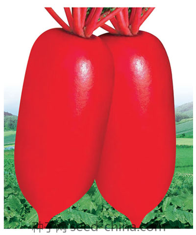 中国农业科学院郑州果树研究所引进选育的耐热、早熟红皮萝卜一代杂交种。皮大红色,肉白色,品质好,不易糠心;谚品种不仅适应春季栽培,而且也是夏秋季栽培的首选品种,叶片深绿色,主脉大红色,每株叶片数24片,株高约30 35cm,开展度50cm,肉质根短圆筒形,长约16cm,径粗约9cm,出土部分8 9cm,每亩产量2000 5000公斤,生育50 55天,抗病型强。