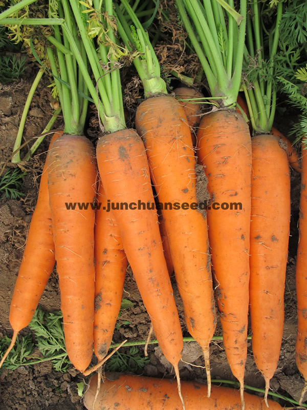 最新代杂交胡萝卜品种,适合早春保护地栽培。根长20-24cm,根径4-5cm,单根重220g-250g。早熟性强,播种后95天可采收。根形顺直,三红率高,收尾钝圆。成品率高,水肥供应充足亩产可超万斤。
