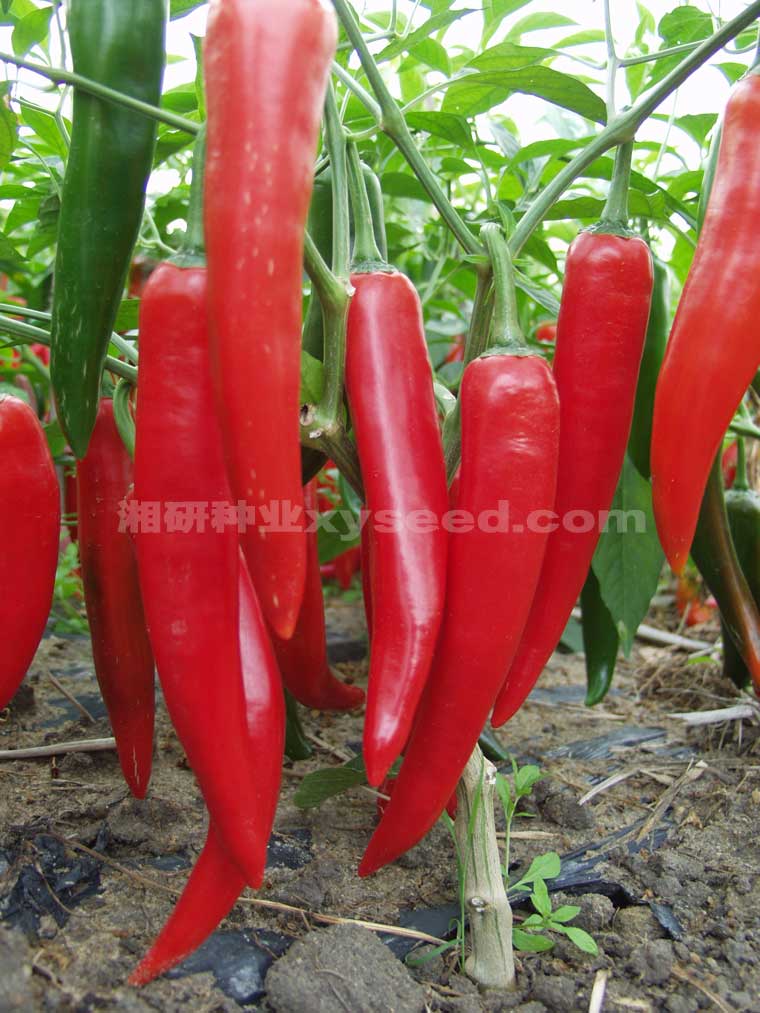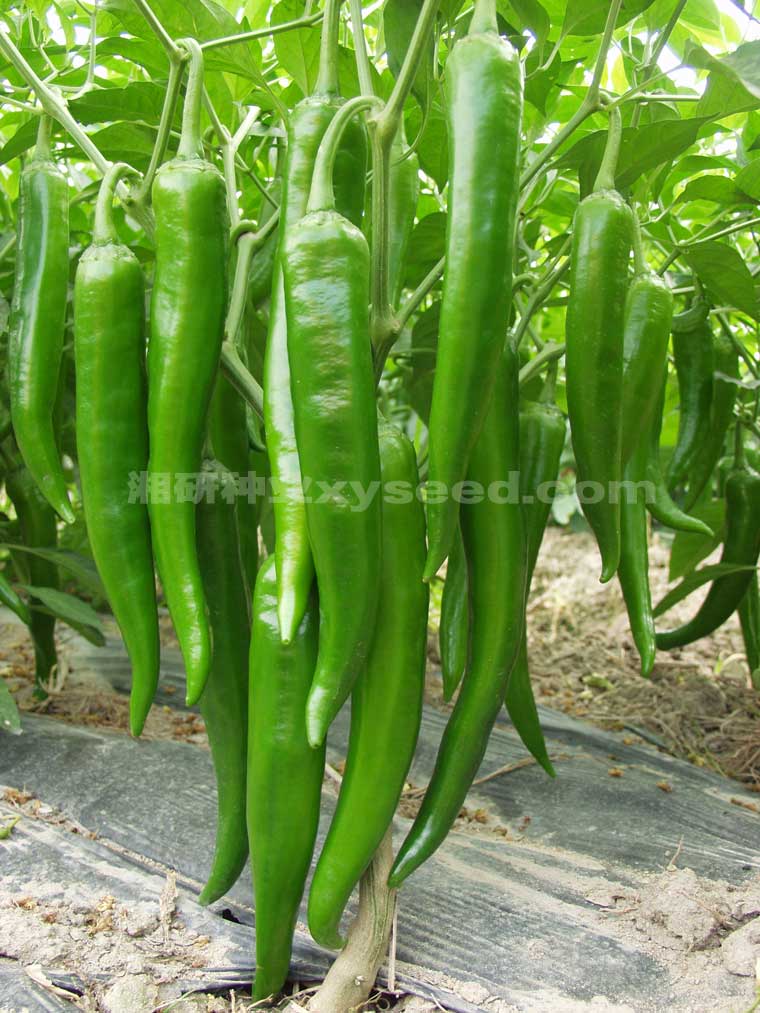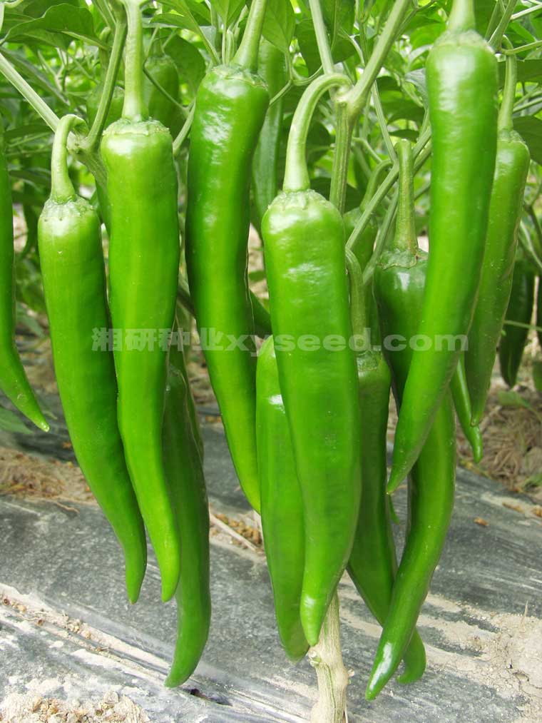 生长势中等,叶片小,始花节位10-12节,连续座果能力强。果实长棒牛角形,果皮绿色,果长19-22厘米,果径3.2~3.5厘米,肉厚0.3厘米,单果重55~62克。辣味中等,果表光滑,顺直无皱,果形整齐,耐贮运。耐湿热,抗病毒病,疮痂病,适应性广,一般亩产量4000公斤左右。