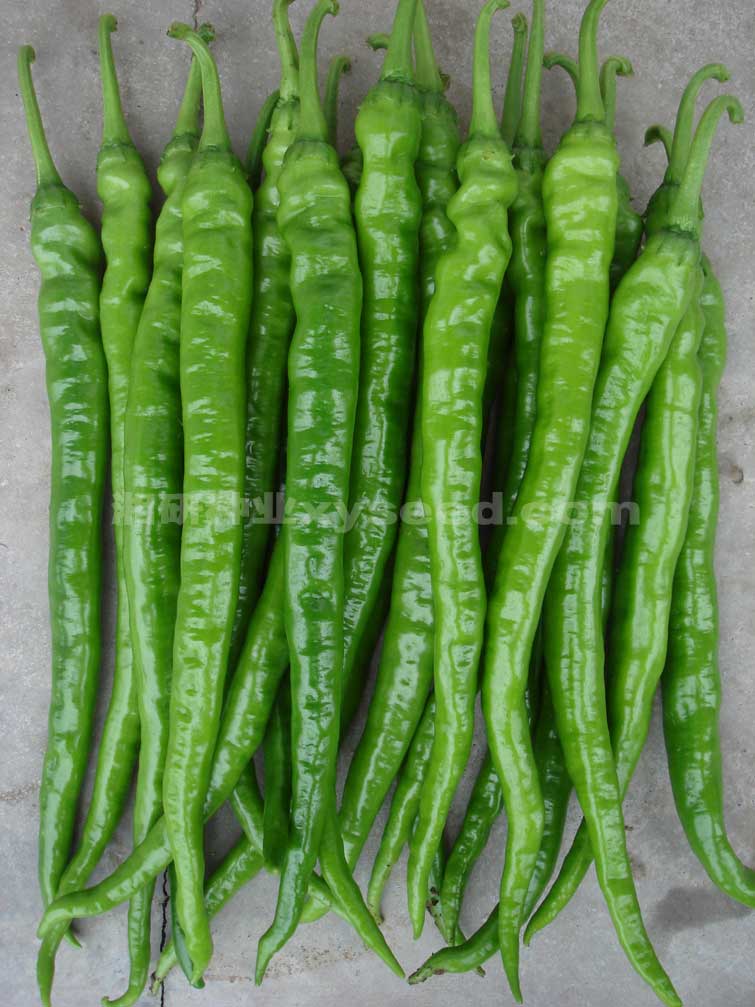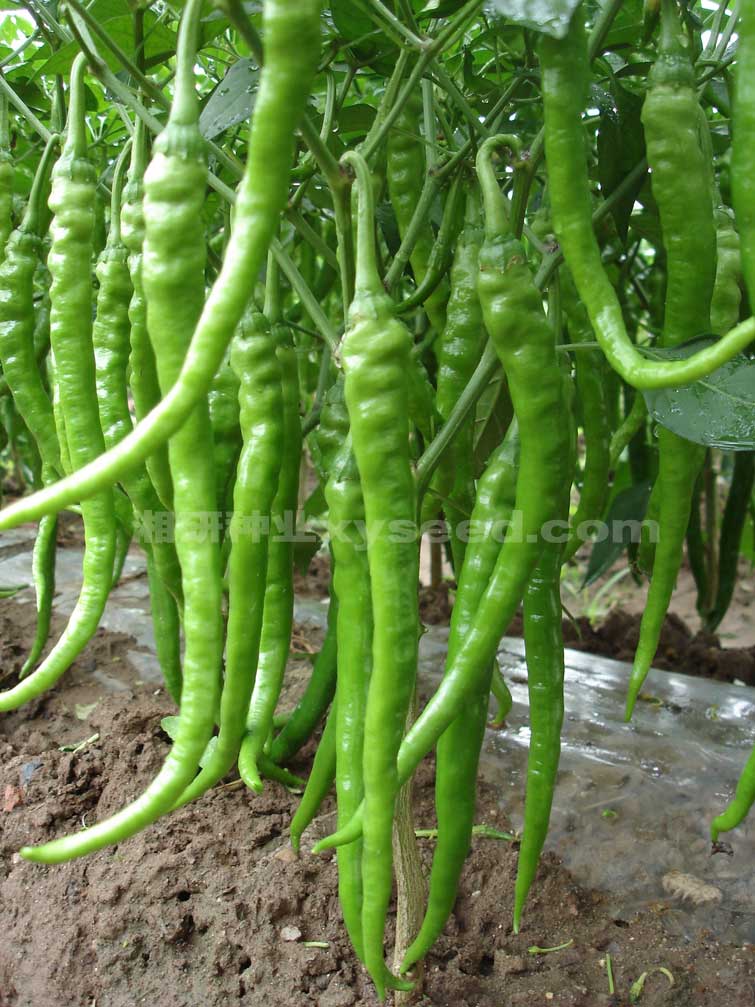 2、长线椒,带螺旋形,绿色,果长26厘米,果宽1.8厘米,单果重30克左右。