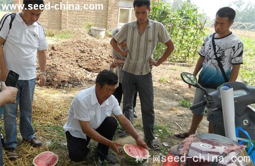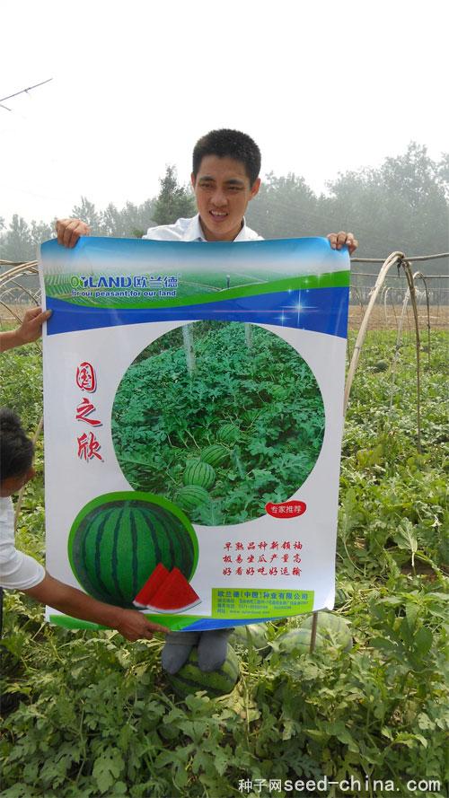 2012年6月16号,欧兰德种业在安徽省砀山县召开国之欣西瓜观摩会,该品种以易坐瓜、口感好、条纹清晰、耐运输部裂瓜受到当地瓜农和收购商的喜爱。