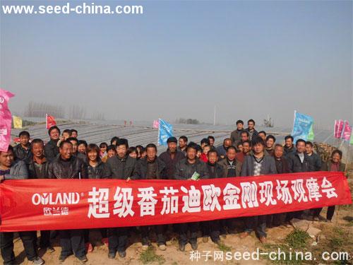 2012年11月6日,欧兰德公司在新乡市原阳县齐街乡西寨村召开了番茄“迪欧金刚”现场观摩会,本次观摩会共有89个当地番茄种植大户参加,大家一道参观了当地菜农刘大山的种植超级番茄“迪欧金刚”的大棚,迪欧金刚番茄的优异表现在当地引起轰动。