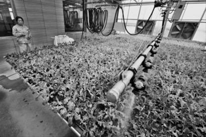 12月24日,在朝阳天宁现代农业技术开发有限公司温室育苗室里,工作人员正在使用移动喷灌机为秧苗浇水。该公司拥有2万平方米的高标准育苗温室20栋,5000平方米智能连体玻璃育苗室一栋,综合生产能力在5000万—8000万株。目前,该公司已发展为果蔬种苗繁育、生产、新技术研发等功能齐全的高科技农业产业化龙头企业。