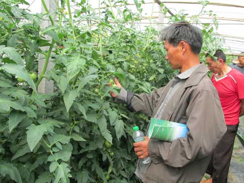 镇农技中心古刚文主任对当地番茄的种植和番茄品种选择进行导性