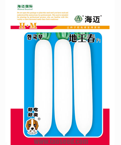 早熟,播种至初收约60天,根长圆筒形,表皮光亮洁白,肉质清甜,口感好,不易糠心。单根重约1300-2000g,根长约38cm,根粗约7cm,极少发生岐根,裂根。叶少叶片平展,根膨大快,不易抽苔,抗性强。