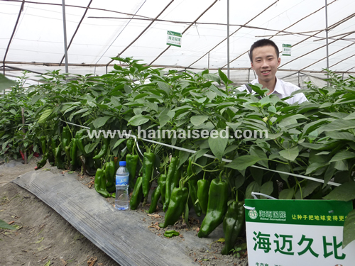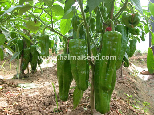 2商品果果绿色。果长18-25cm,横径4-6cm,皮薄肉厚质脆、膨长速度快,单果重约140-260g,大果可大320g,亩产鲜椒约7000-14000斤。