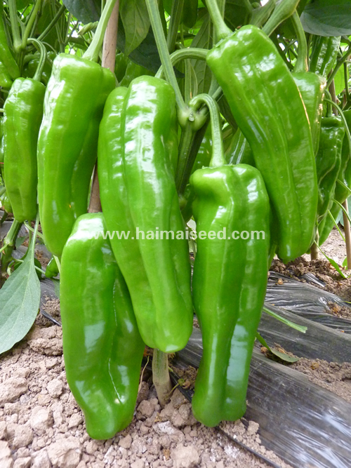1.早熟,嫩果绿色,特大牛角椒,膨长速度快,果长约15-22cm,横径约4-6cm,果重约150-240克,最大可达320克,连续挂果能力强,亩产鲜椒约7000-12000斤。