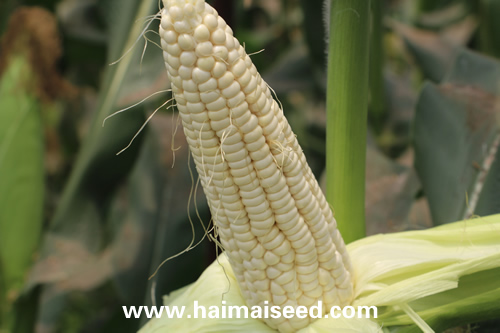 早中熟,出苗到鲜食采收88天左右,株高约2m适应性强,穗位90CM左右,籽粒雪白,香甜糯,。果穗长锥形,大棒,长约25cm,穗行16-18cm,鲜果穗高达420克左右,株形半紧凑,排列整齐、紧密,皮薄好吃,亩产鲜果穗高达2200-3000斤。