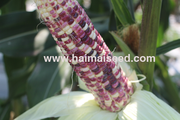 中熟,株高约2.2米,株型半紧凑,适应性强,从播种到鲜穗采收约83-90天,穗位1.1米。果穗长棒型,大棒,长约20-26cm,穗粗约4.6cm,穗行16-18行,鲜果穗高达320-450g,籽粒黑、白、紫相间,结实饱满。亩产鲜穗约1800-2200斤。