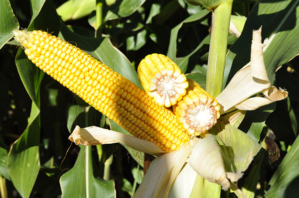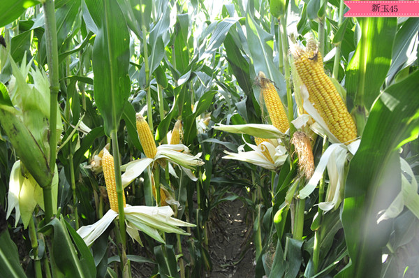 1.植物学性状:株高260-280厘米左右,穗位95厘米左右,穗位低,茎秆坚硬,抗倒伏性强。果穗筒型,籽粒黄色,半硬粒型,穗轴红色。