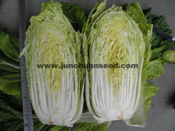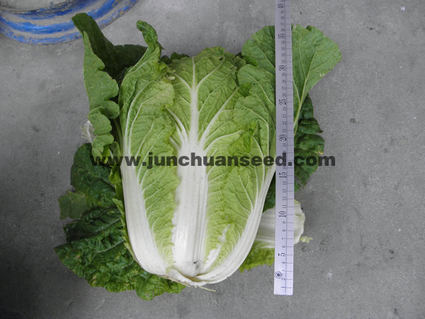 特征特性: 1.生长旺盛,耐抽苔的栽培品种。 2.抗病性强,尤抗软腐病、霜霉病、 3.外叶深绿,内叶嫩黄,结球紧实,球形高桩直筒型,叶球高25-30厘米,形状优美。 4.春季保护地,夏季高冷地适宜栽培。 5.定植后约60天可收获,平均球重3-5公斤。