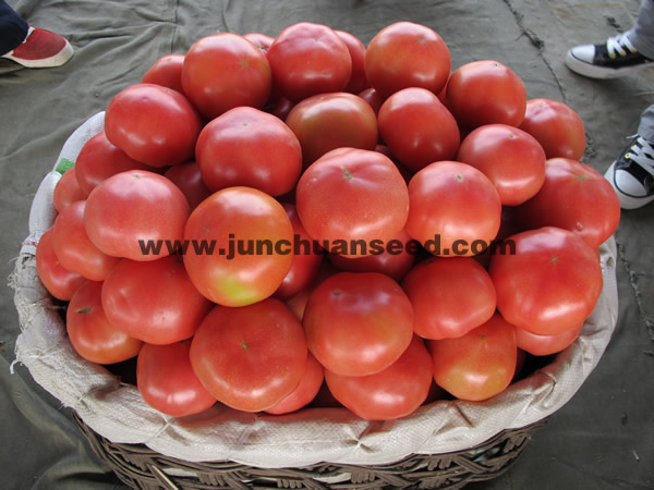 早熟无限生长型大果番茄,耐低温弱光,叶片中等,第一花序在6-8节,分红过,圆形,色泽艳丽,单果重220-260克,果实大小均匀, 产量高,果实硬度高,耐运输,抗病性强,不易发生灰霉病、早晚疫病,抗病毒病、枯萎病及叶霉病。