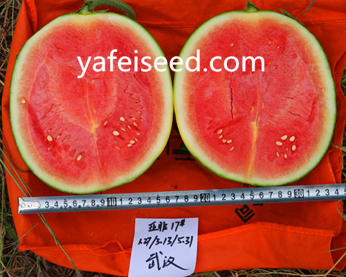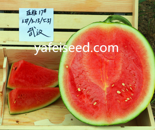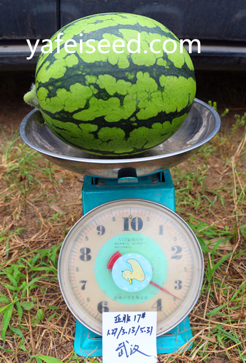 果实高球形,果重2.5kg,果皮浓绿,花纹美观。 果肉鲜红,肉质硬,口感好,糖度可达13度以上。 高温期果实稳定,秀品率高。