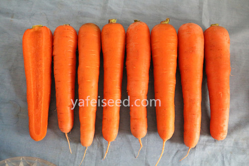 中早熟,条根圆柱形,收尾圆钝,芯柱细,颜色深红,三红率高,表皮光滑,根长20-24cm,单根重200-350g,播后110-120天收获。