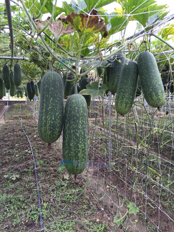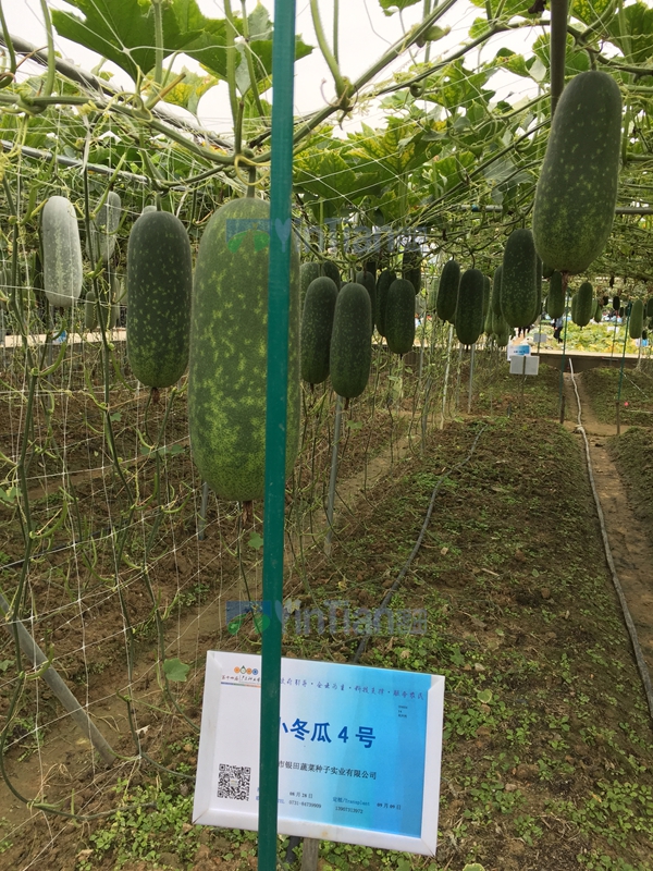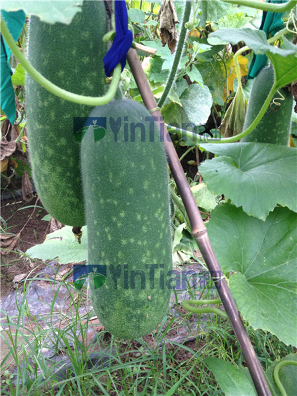 ·最新研制的杂交一代新型小冬瓜。植株生长旺盛,瓜圆柱 形,头尾均匀,瓜长18-20厘米可以采收,25-30厘米品质仍保持原有风味。老瓜着有蜡粉。单瓜重可达3-5公斤,连续结果能力强,产量高,货架期长,耐贮运。该品种商品性优良,嫩瓜、老瓜均可采收上市,适合现代家庭消费及出口加工。