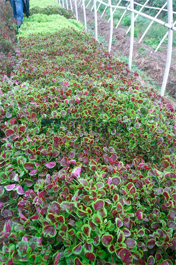 生长快速,叶片圆大,中央部分紫红色,叶缘绿色。