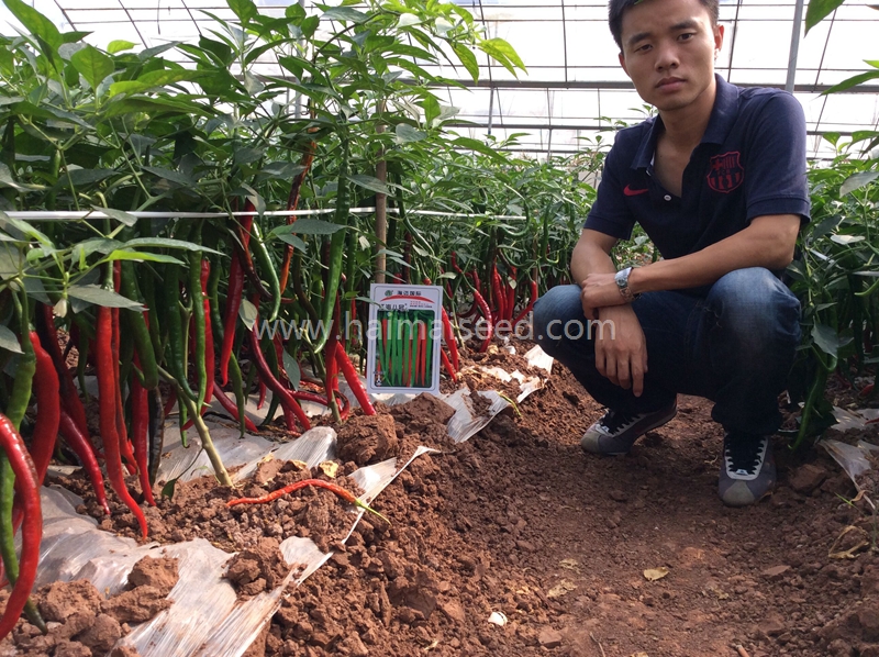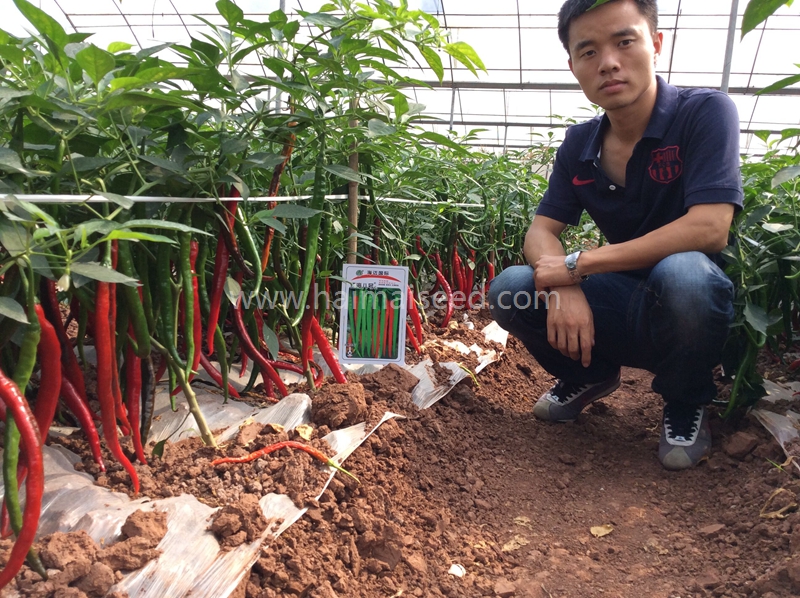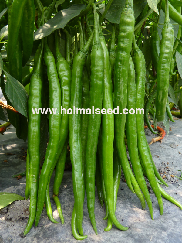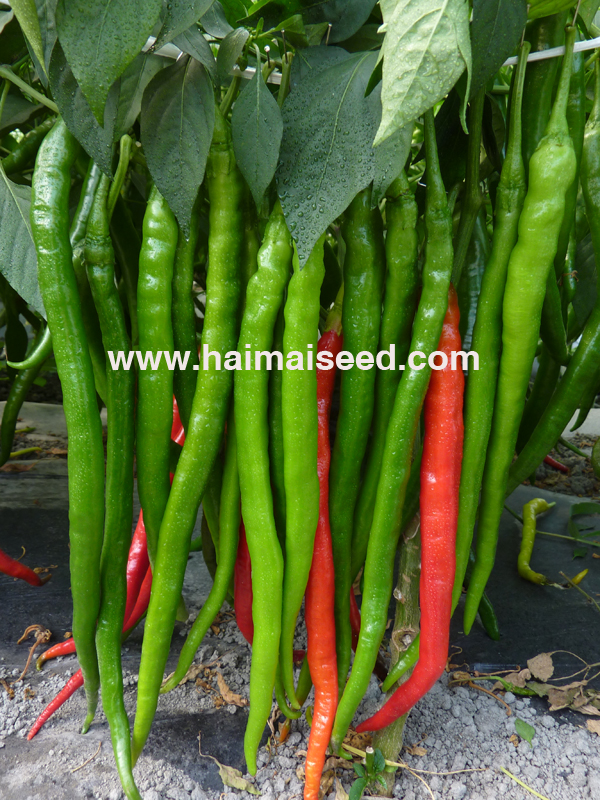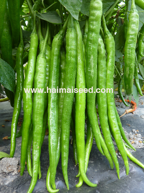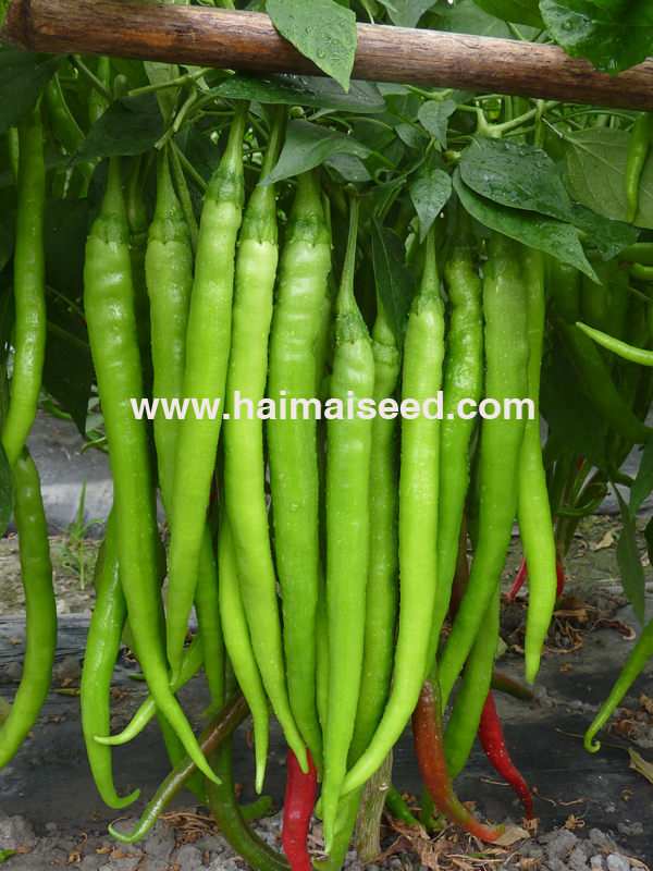 2、嫩果浅绿,红果鲜亮,辣味浓香,果长22-30厘米,横径1.6厘米,果形光滑顺直。
