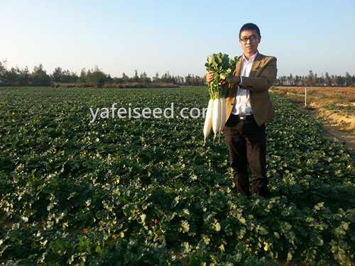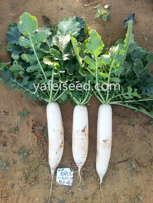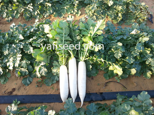 日本研制,韩国型改良的春萝卜新品种,耐低温性较好,极晚抽苔,表皮雪白光滑且较厚,不易裂根,生长势旺,抗病性好,在圃性强,超期不易变长,可适当延期收获,播种后60天左右采收,单根重1.4-1.8kg,根长30-35cm,根粗6cm左右,整齐均匀,圆柱形收尾,口感好,商品性一流。