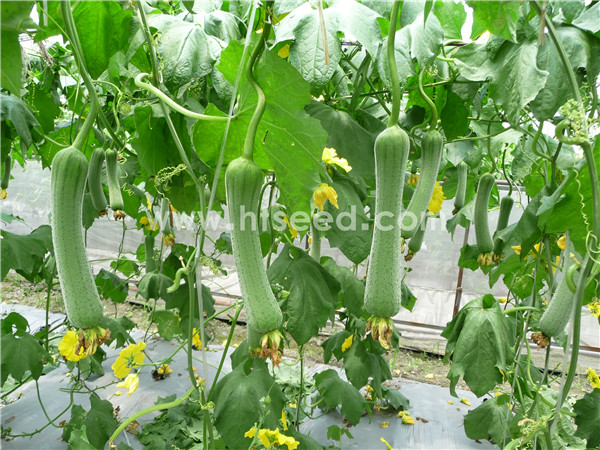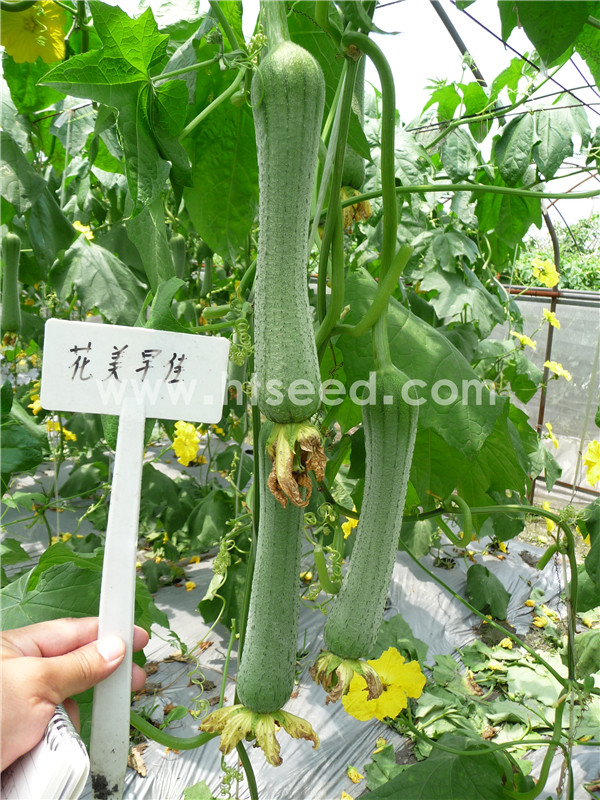 特早熟,第一雌花节位6-8节,肉丝瓜类型,连续坐果能力特强瓜皮绿色,瓜长26-29厘米,果宽6厘米左右,单瓜重320克左右,瓜条较硬,顺直美观,商品性极佳。
