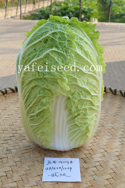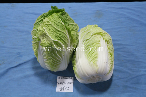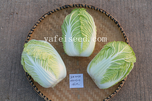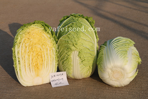 早熟,定植后60天左右成熟。外叶深绿,内部芯黄,叶球半叠抱,直筒型。单球重2.5-3.0kg,产量高,整齐度好,商品性佳。耐根肿病能力强,对霜霉病,软腐病及病毒病也有较强的抗性。