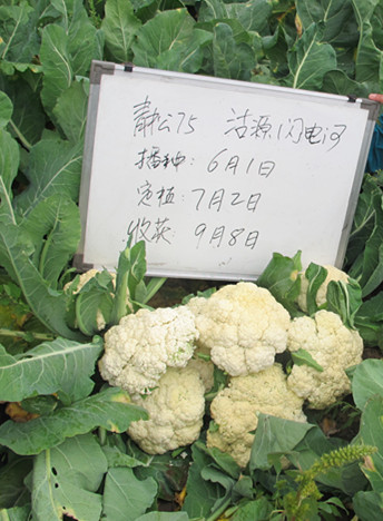 品种特性:最新育成的中早熟松花菜新品种,秋季种植,定植后75天左右收获。花球松散、花梗青且长,品质好,单球重2公斤左右。植株长势旺盛,抗逆性好,花球形成期适宜气温为日平均温度24-20℃。